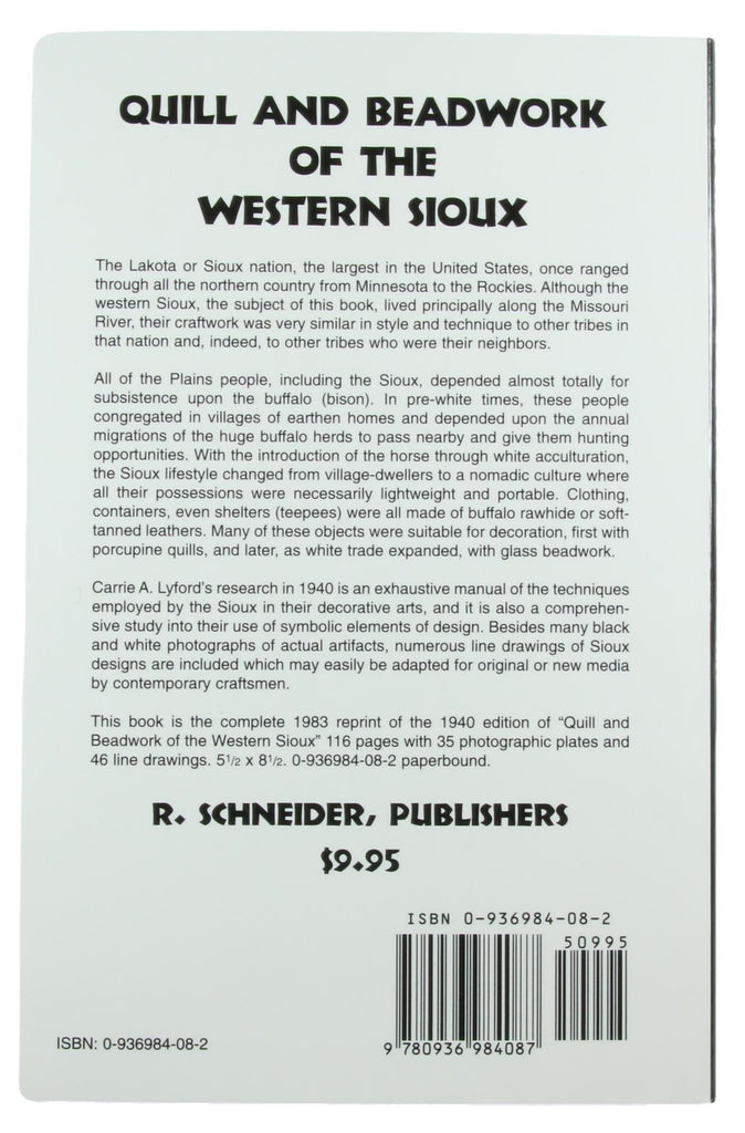Quill & Beadwork of the Western Sioux by Carrie Lyford is a classic book that covers various craft techniques of the Sioux, including natural dyes for quills and 10 different quillwork stitching techniques, along with bead colors, lazy stitch, loom work and applique beadwork. Preparation of hides and sinew is also explained. Decoration of clothing, ceremonial items, tipis and furnishings is all covered, along with the use of design elements and their symbolism in relation to the items they adorn.